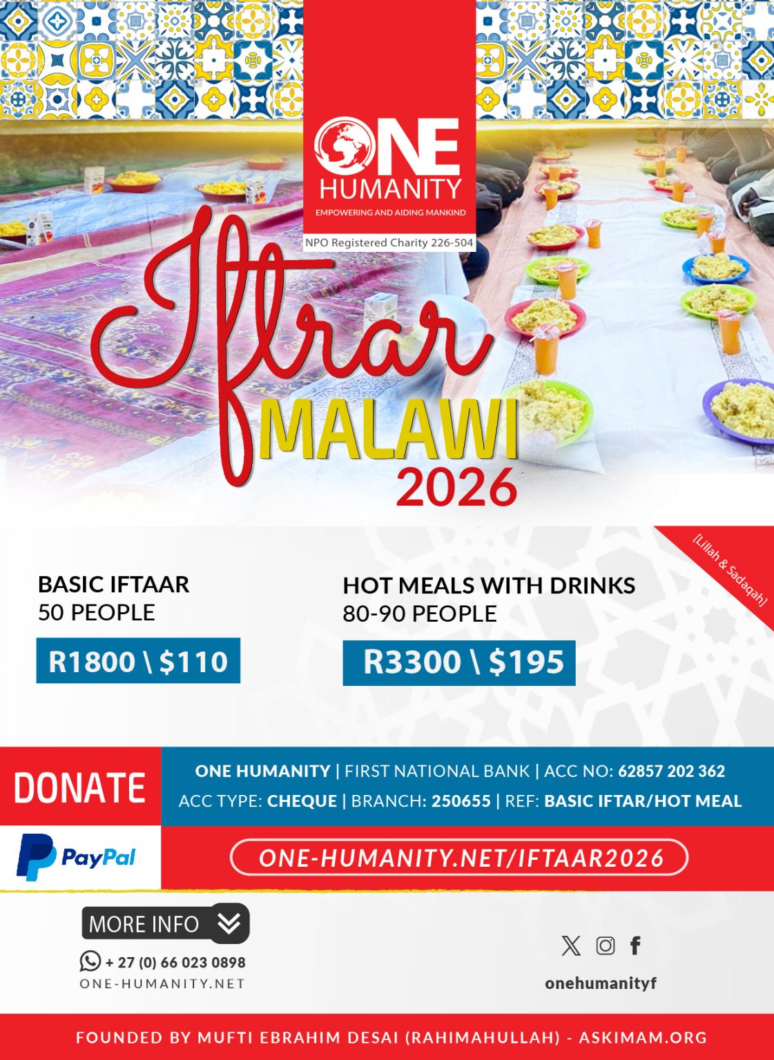 Please note that while our efforts and announcements are aimed at inviting only individuals observing fast to join the iftar, we do not assume responsibility for the participation of non-fasting individuals. JazakAllah for your understanding
